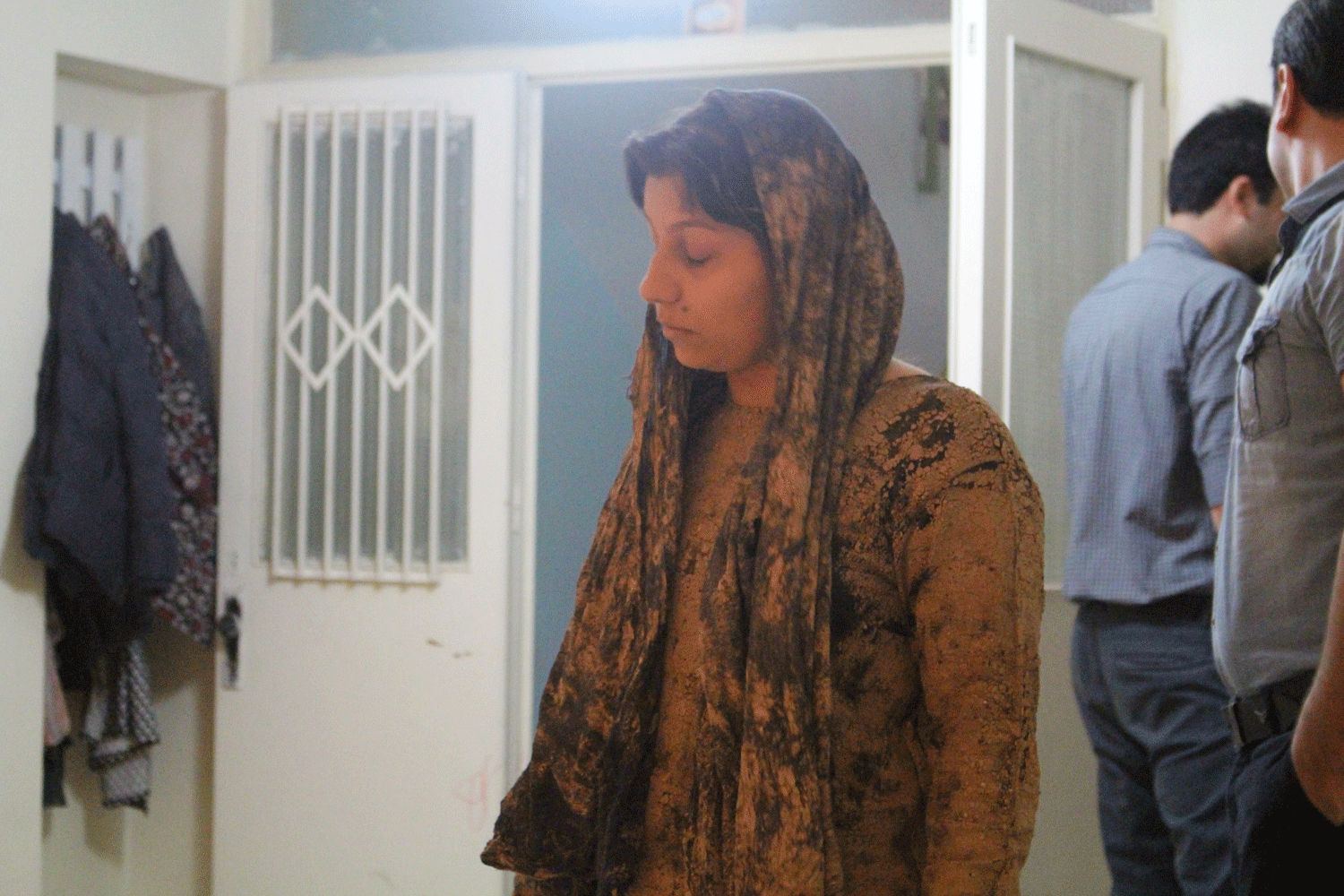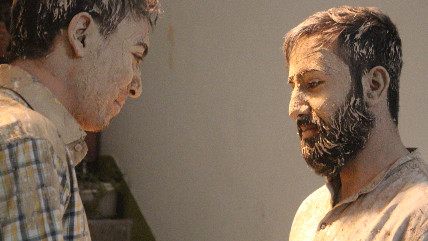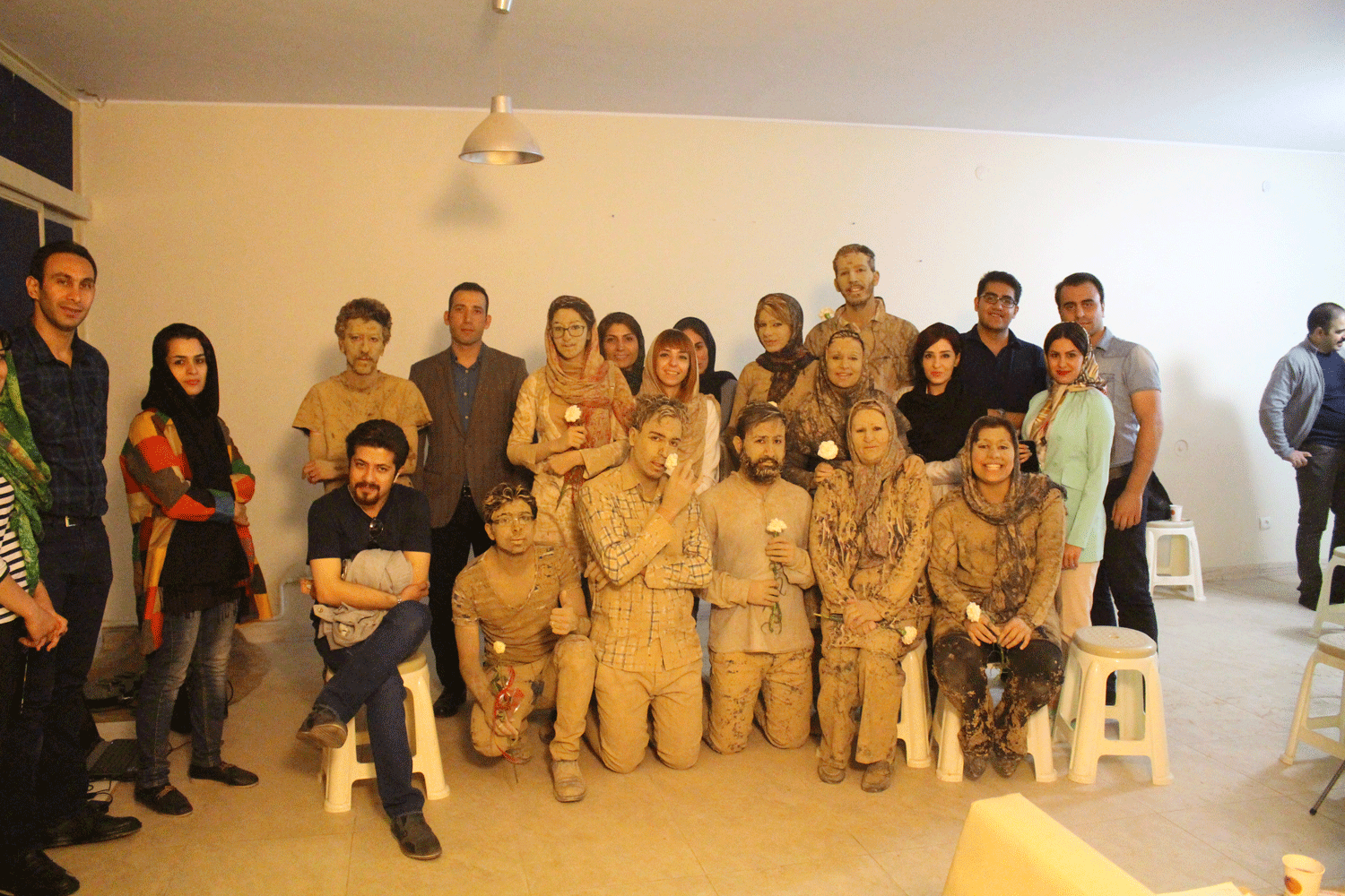 دو نفر گل اندود شده در آستانه ی در می ایستند به طوری که هر کس با ورود یا خروج خود کمی خاکی شود( به نشانه آ نکه ما هر لحظه در حال برخورد به یکدیگر هستیم بی آنکه واقعا بفهمیم که چه اثری بر دیگران می گذاریم و چه اثری دیگران بر ما می گذارند)